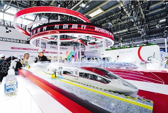 推动内外贸一体化发展能够有效联通两种资源、两个市场,有利于充分发挥我国拥有世界最完整产业体系的独特优势,提升产业链供应链稳定性。2025年7月16日至20日,以“链接世界 共创未来”为主题的第三届中国国际供应链促进博览会在北京举行。图为7月14日在此次博览会先进制造链展区拍摄的中国中车展位。