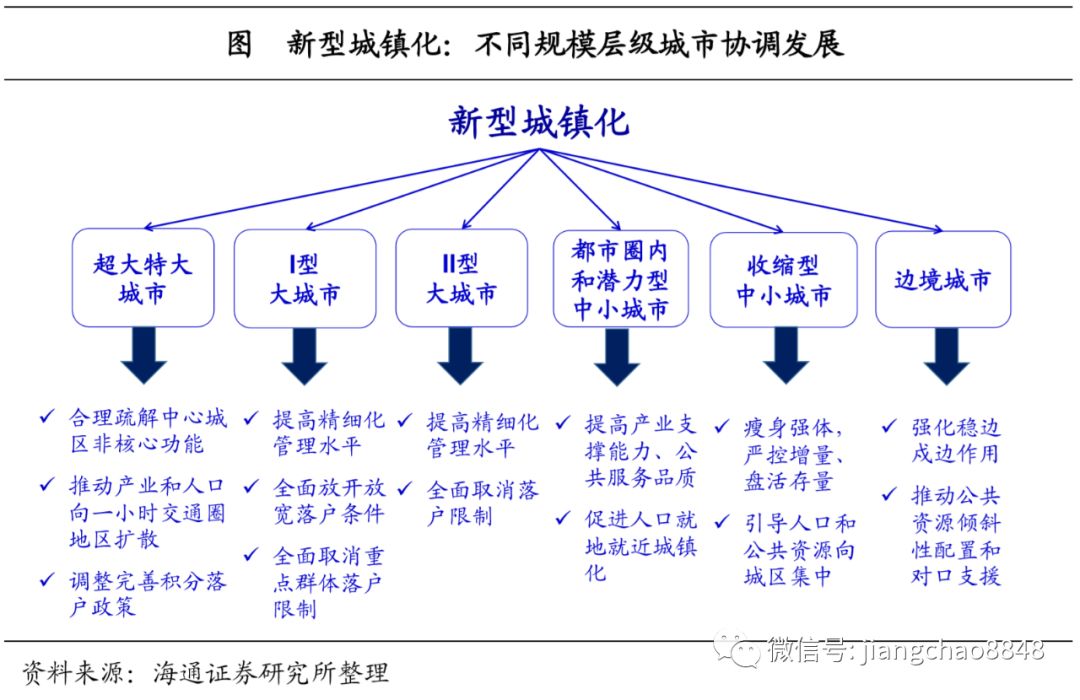 政策红利值得期待。我们认为,新型城镇化是未来十年需求端确定性最强、最值得期待的红利之一。首先,“取消重点群体落户限制”,意味着土地制度改革、户籍制度改革有望提速;其次,“推进常住人口基本公共服务全覆盖”,意味着民生领域各项改革将持续推进;最后,“构建大中小城市和小城镇协调发展的城镇化空间格局”,意味着不同规模层级城市将协调发展。而随着新型城镇化进程的推进,人口将持续向大城市和都市圈集中,足以支撑中国房地产销售不至于出现崩塌,也足以支撑居民消费的稳定增长。